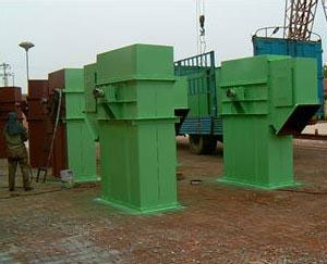 传动装置:TD型斗提机的传动装置有两种形式,分别配有YZ型减速型或ZQ(YY)型减速器。YZ型轴装减速器直接套装在主轴轴头上,省去了传动平台、联轴器等,使结构紧凑,重量轻,而且其内部带有异型辊逆止器,逆止。该减速器噪声低,运转平稳,并随主轴浮动,可安装应力。